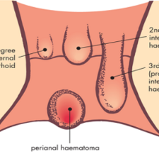 A perianal hematoma is a collection of blood that has leaked from a burst blood vessel in the area around the anus. This blood pools up outside the blood vessel below the surface of the skin, although it is possible to see the characteristic dark-blue discoloration with the naked eye.