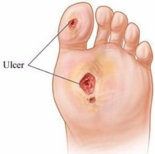 A diabetic foot ulcer is an open sore or wound that occurs in approximately 15 percent of patients with diabetes, and is commonly located on the bottom of the foot. Of those who develop a foot ulcer, six percent will be hospitalized due to infection or other ulcer-related complication.